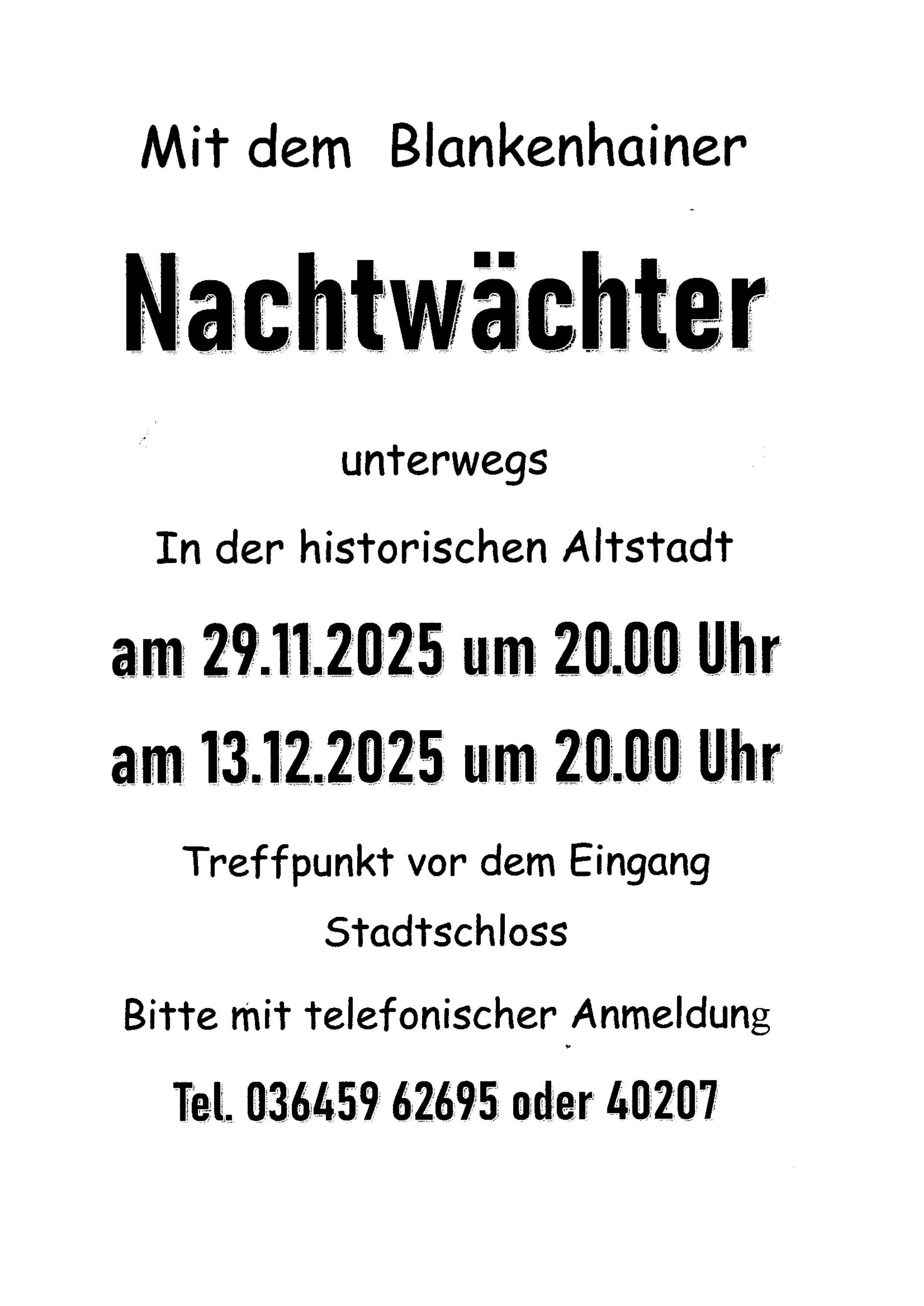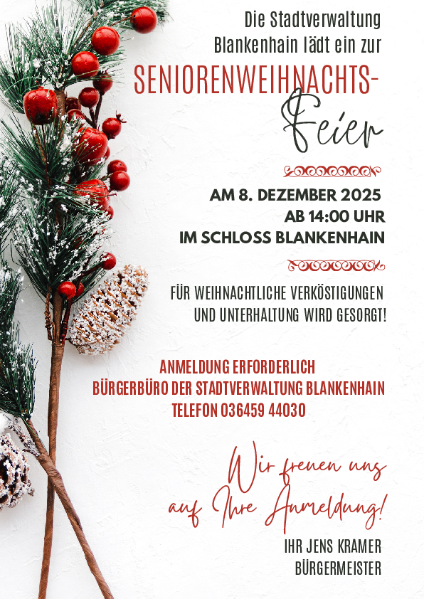 Kartenvorverkauf ab 22.09.2025 im Bürberbüro der Stadt Blankenhain